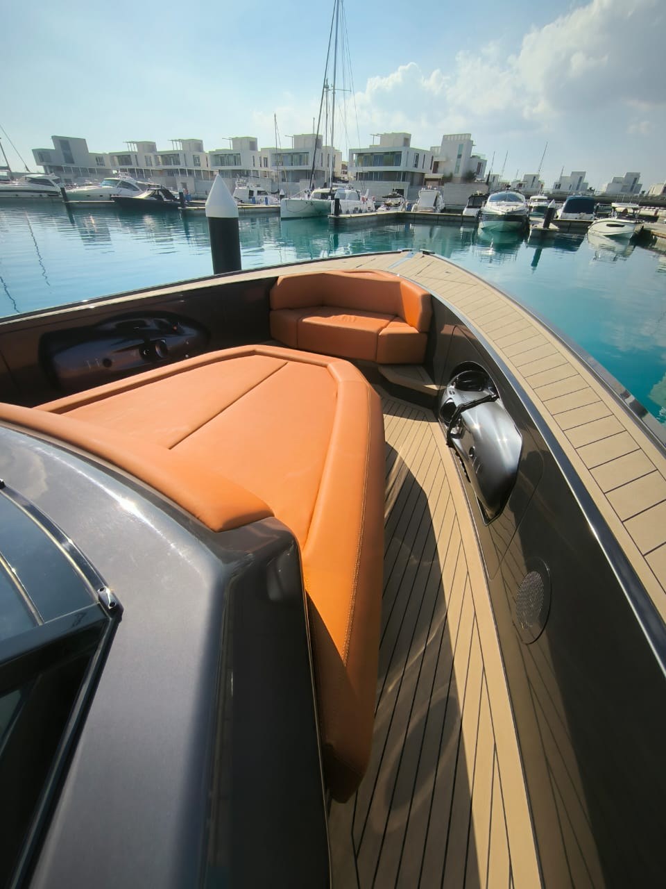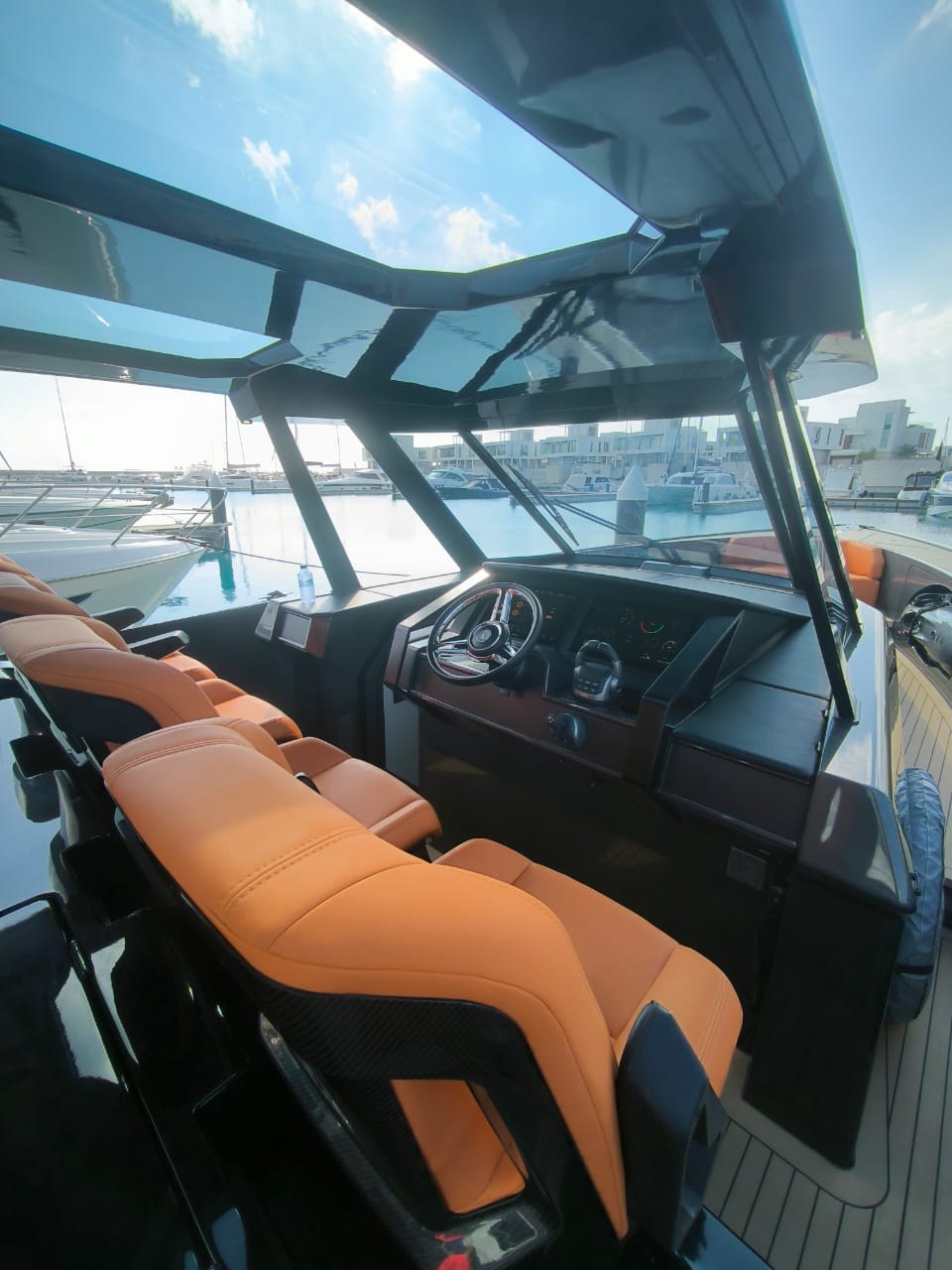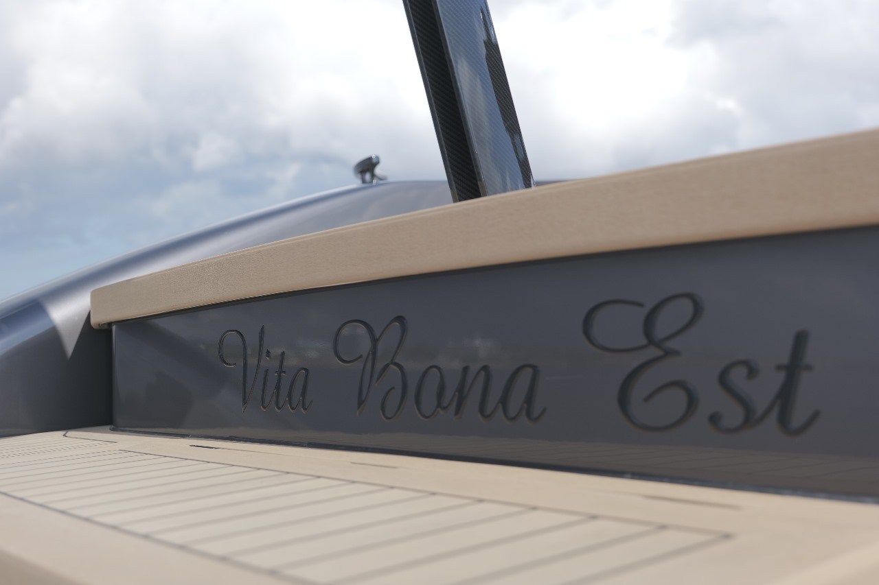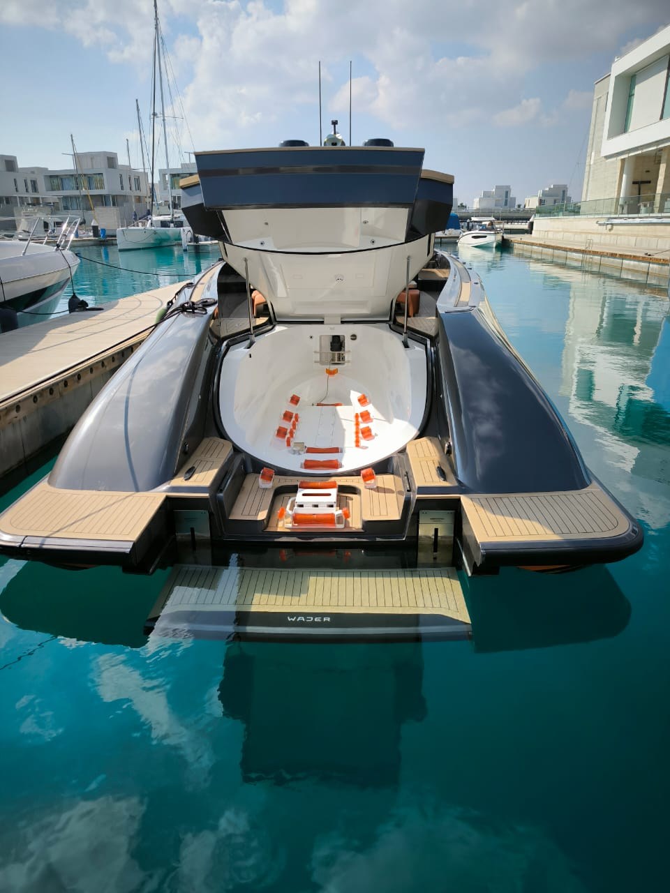 Anchor, Anchor Chain Washdown, Auto Dynamic Trim Interceptor, Automatic Bilge Pump, Auto-Trim, Batteries, Battery charger, Bilge Alarm, cockpit table, Courtesy Lights, Deck Shower, Electric Bilge Pump, Electric Windlass, Fire Extinguishing System, Hard top, Horn, Jet Boat, Shorepower connector, Special Colour, Tender, Tender Garage.