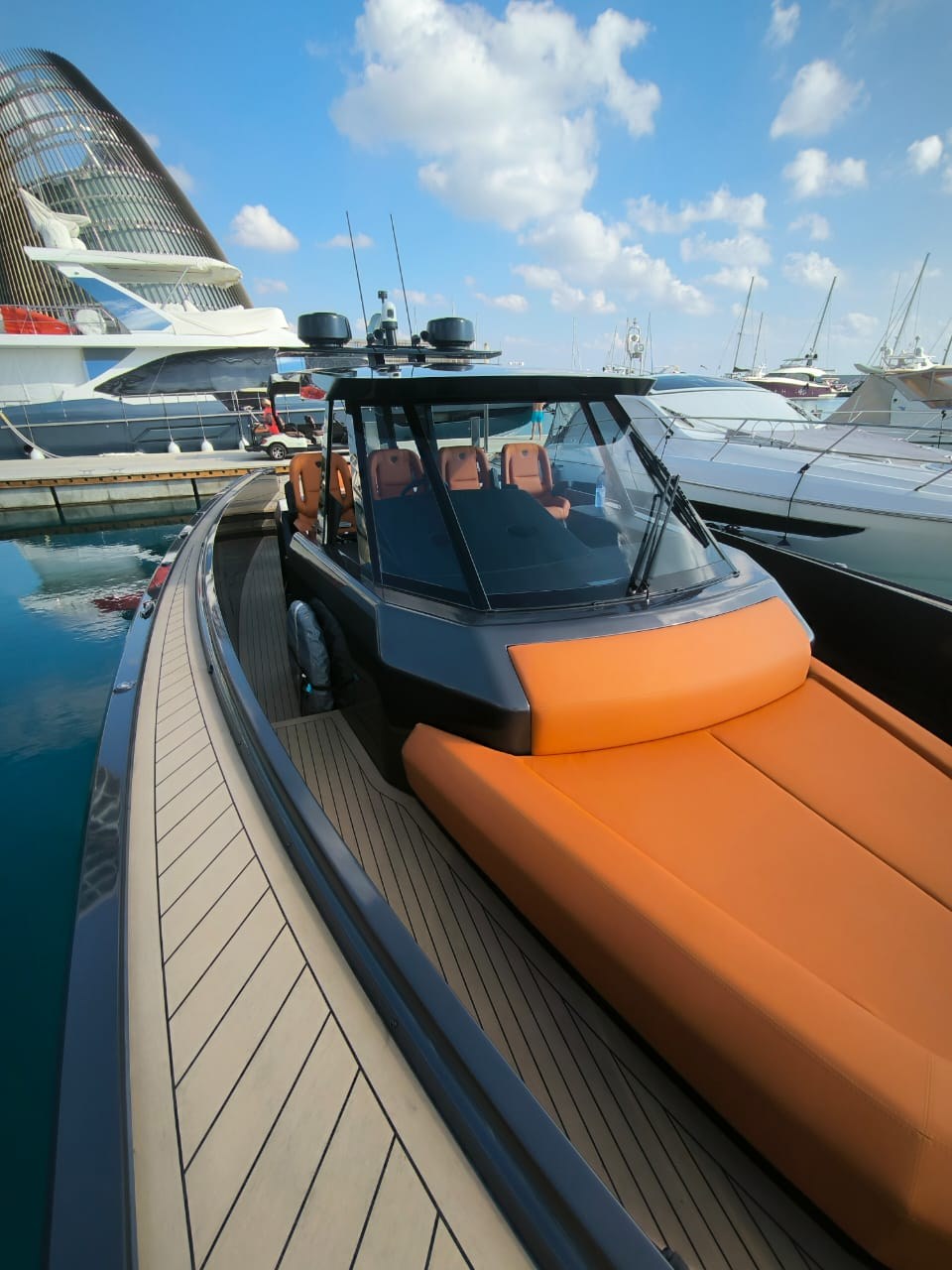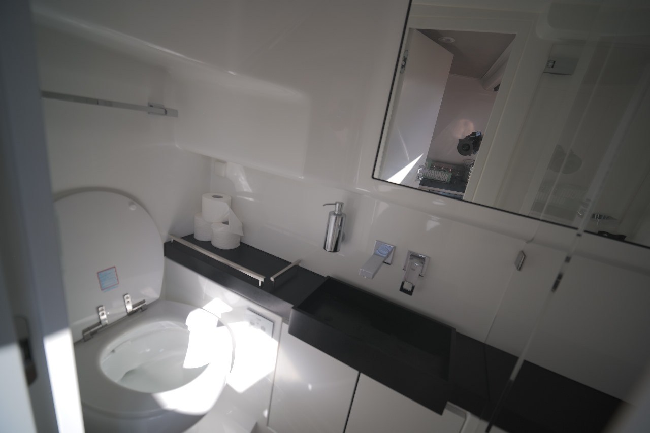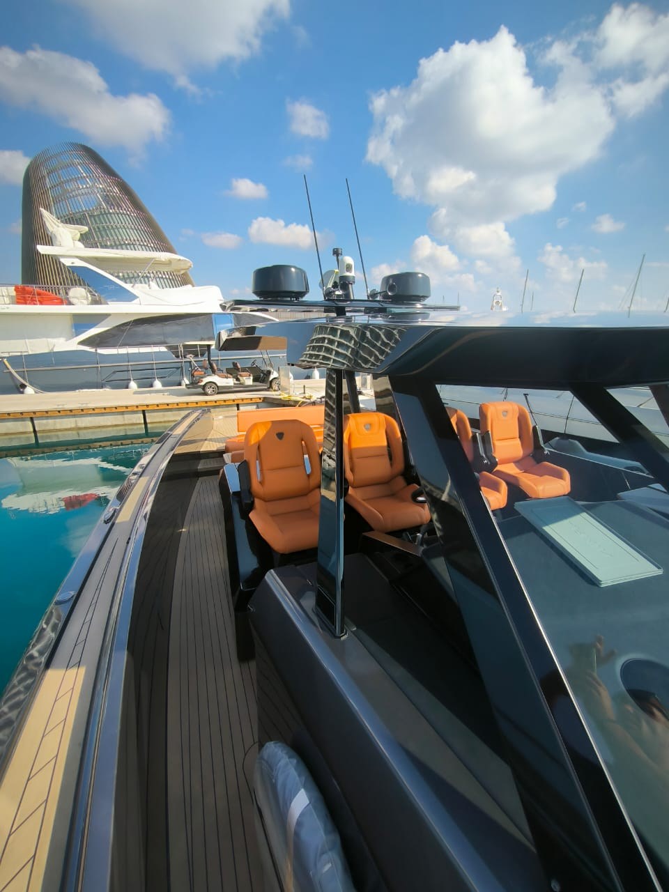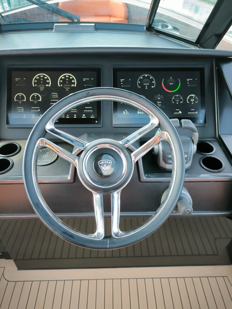 Anchor, Anchor Chain Washdown, Auto Dynamic Trim Interceptor, Automatic Bilge Pump, Auto-Trim, Batteries, Battery charger, Bilge Alarm, cockpit table, Courtesy Lights, Deck Shower, Electric Bilge Pump, Electric Windlass, Fire Extinguishing System, Hard top, Horn, Jet Boat, Shorepower connector, Special Colour, Tender, Tender Garage.